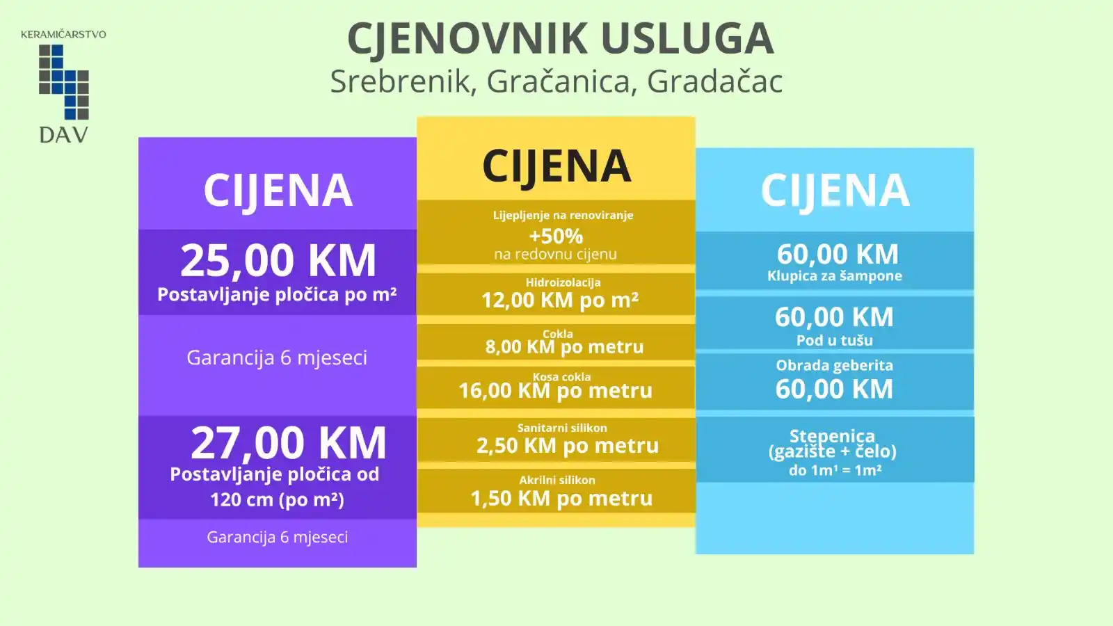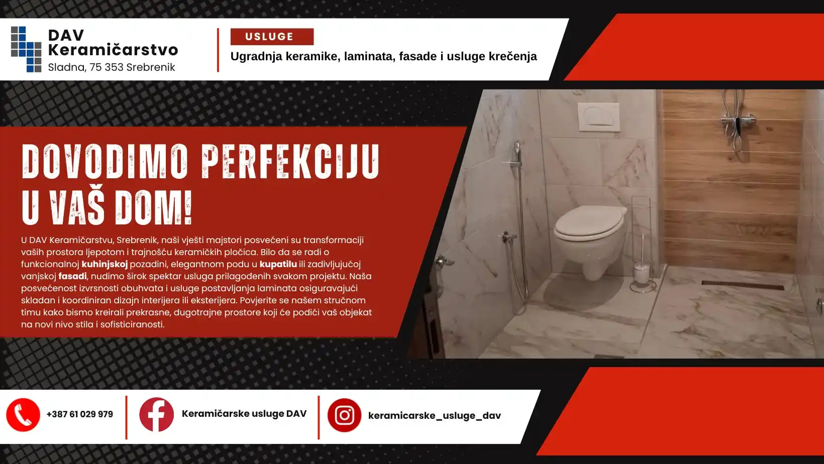 Majstor za ugradnju keramike, laminata, fasada i krečenje, s fokusom na kvalitet i vrhunsku preciznost. Svakom poslu pristupam profesionalno, posvećujući pažnju detaljima i dugotrajnosti. Trudim se da svaki projekat bude izveden po najvišim standardima.