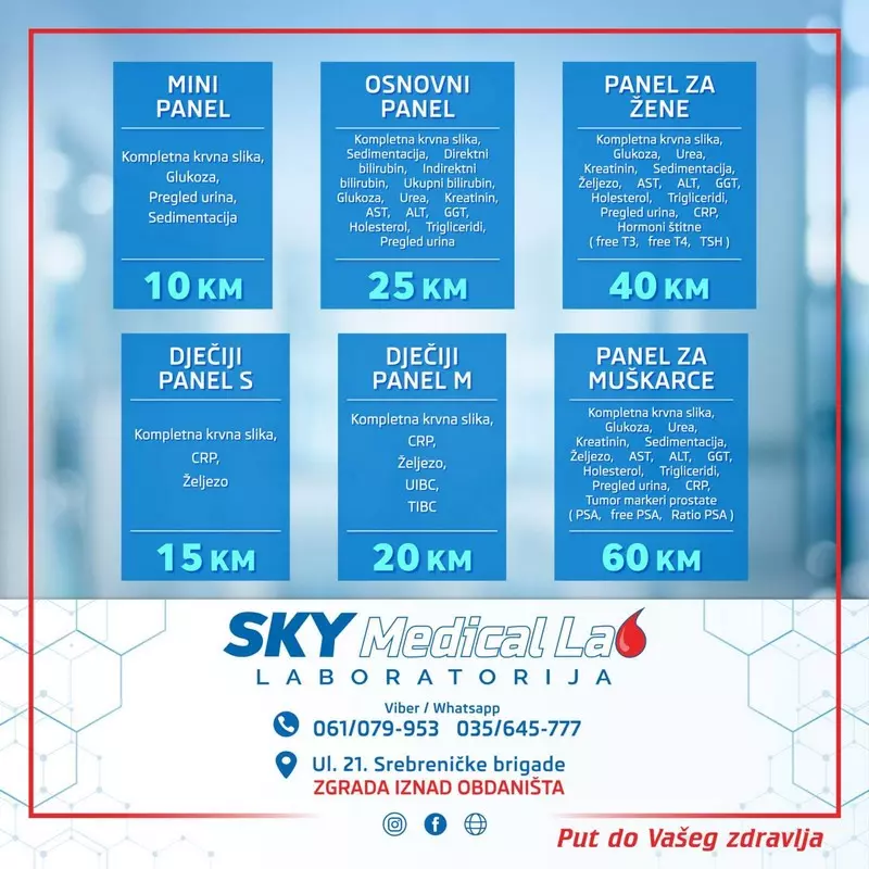 Laboratorija “Sky Medical Lab” registrovana je za laboratorijsku dijagnostiku iz oblasti biohemije, imunohemije i hematologije.